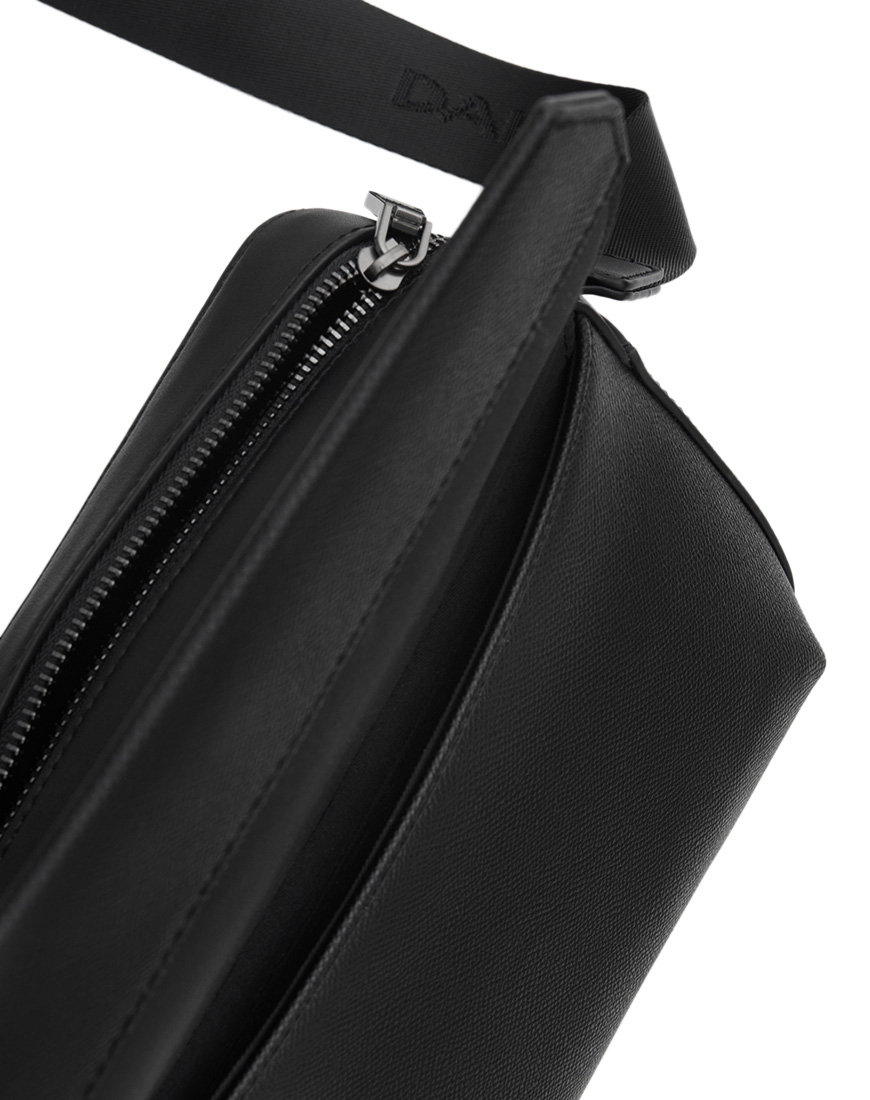 DP Iconic Flap Crossbody bag is crafted from Black Cross grain PU in an elegant monochrome colorway. Easy to indentify as part of the DP Icon collection, the bag’s front pocket flap has precision-cut corners and is signed with gun metal DP Icon initials. The detachable strap adjusts easily for shoulder or cross-body wear. Combining style and functionality body-friendly shape. Perfectly suited for daily essentials, Urban lifestyle.
