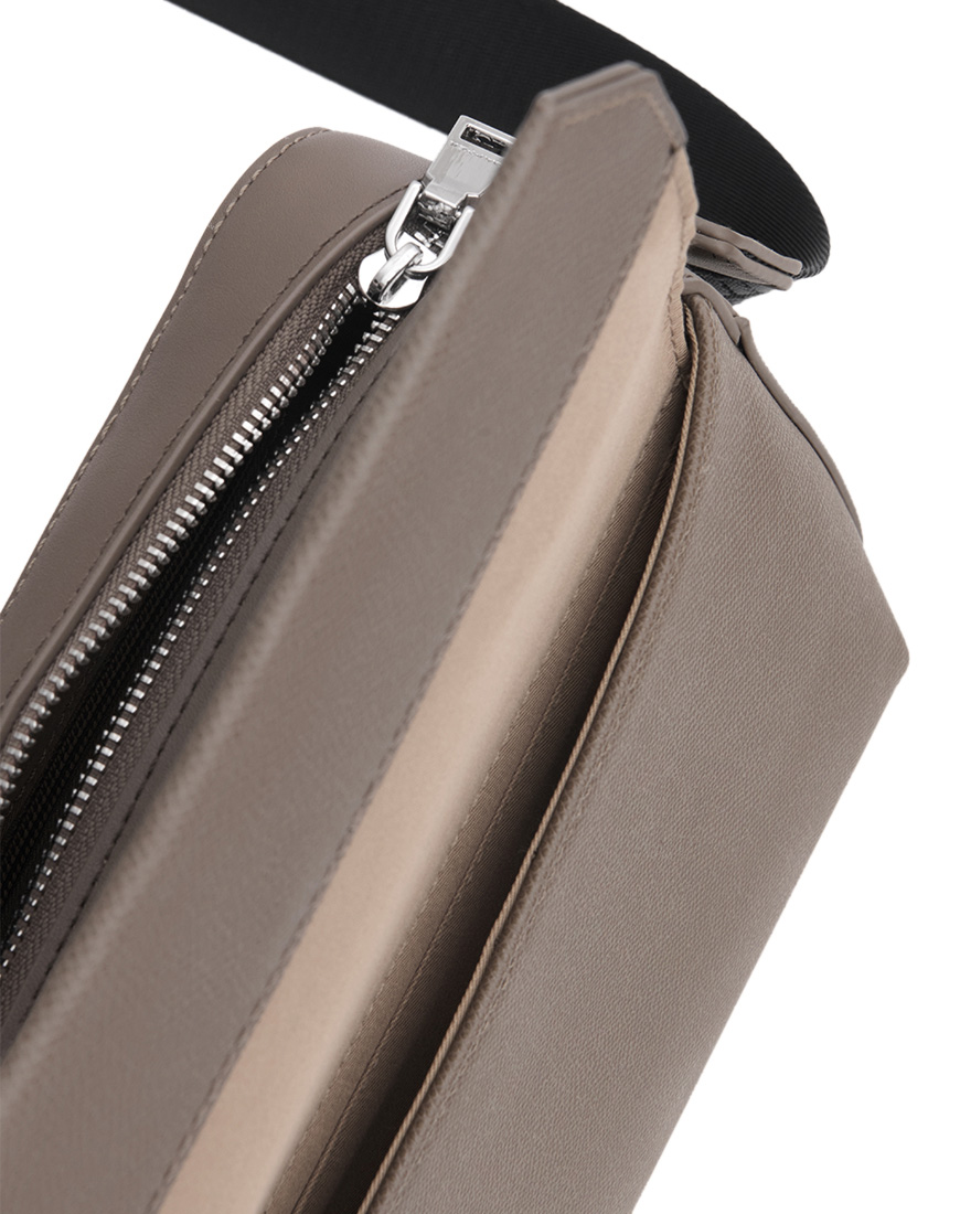 DP Iconic Flap Crossbody bag is crafted from Taupe Cross grain PU in an elegant monochrome colorway. Easy to indentify as part of the DP Icon collection, the bag’s front pocket flap has precision-cut corners and is signed with gun metal DP Icon initials. The detachable strap adjusts easily for shoulder or cross-body wear. Combining style and functionality body-friendly shape. Perfectly suited for daily essentials, Urban lifestyle.