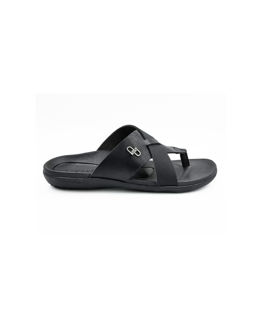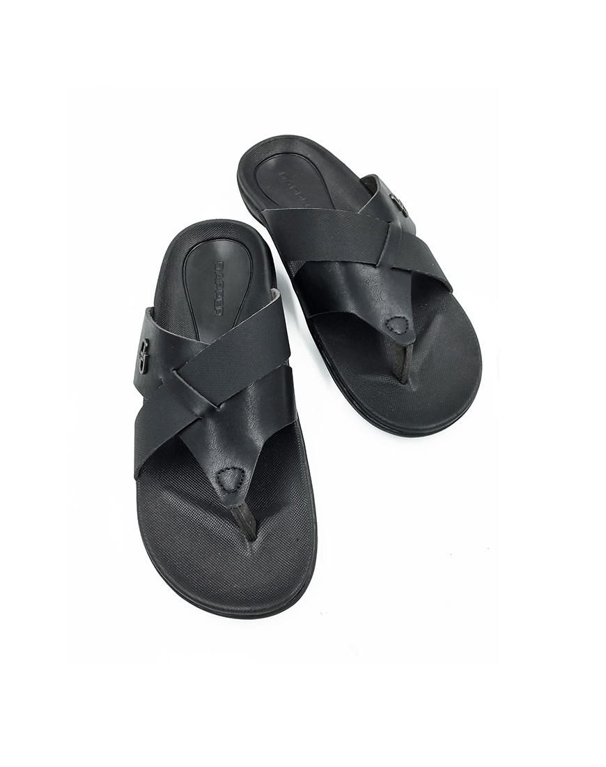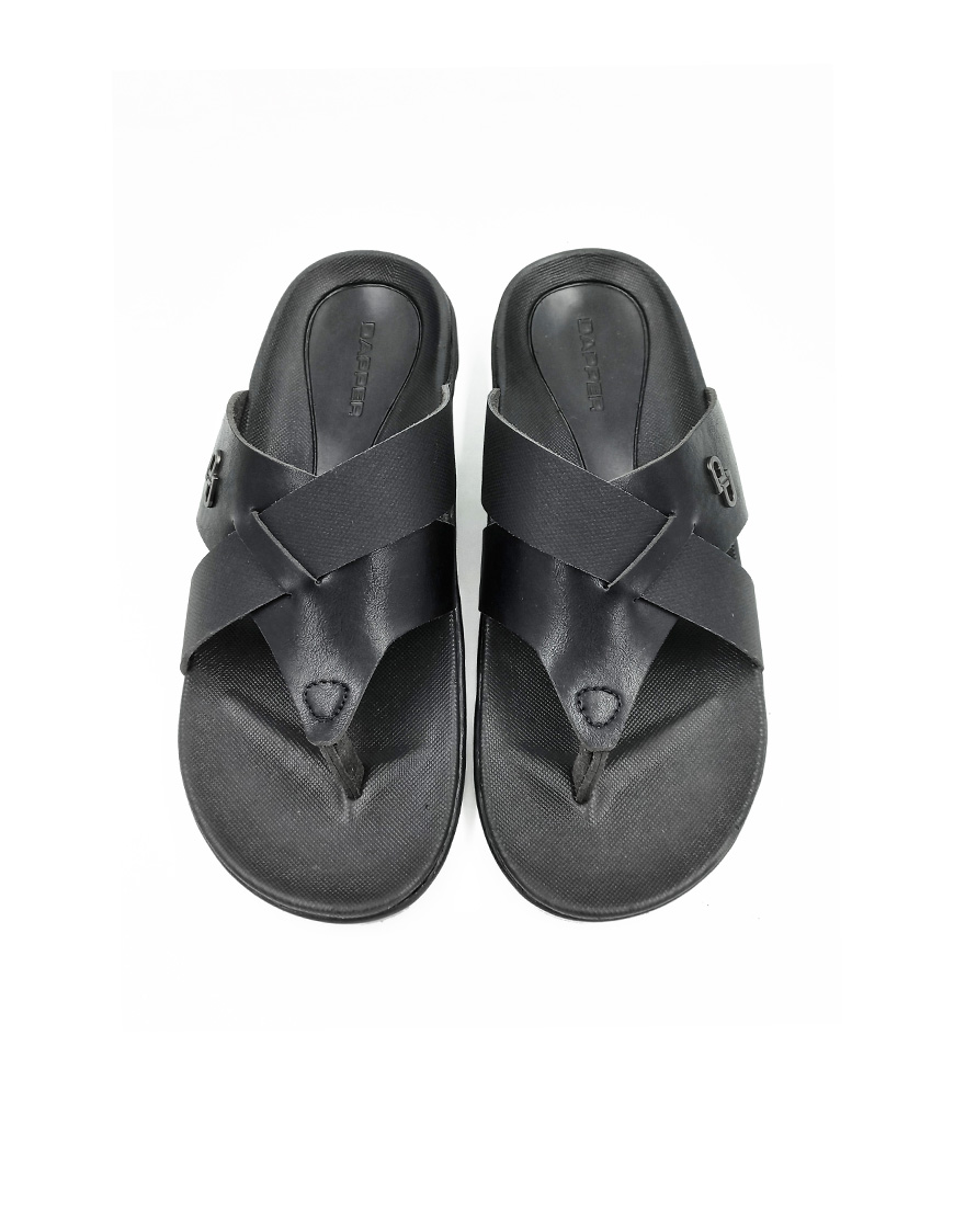 Thong Sandals made with black Micro Fiber upper match with Metal DP Icon logo, Lightweight midsole with Comfort cushioned insole. non-slip black rubber outsole.