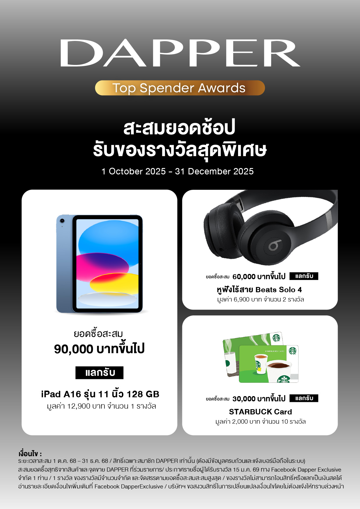 -จุดขายที่ร่วมรายการ DAPPER ในเซ็นทรัล โรบินสัน เดอะมอลล์ ทุกสาขา สยามพารากอน วีสแควร์ นครสวรรค์ และ DAPPER Shop ทุกสาขา