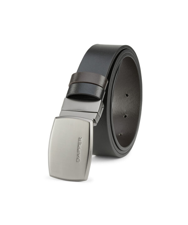 เข็มขัดหนังแท้ แบบใส่ได้ 2 ด้าน Reversible Rectangular Plaque Buckle Belt