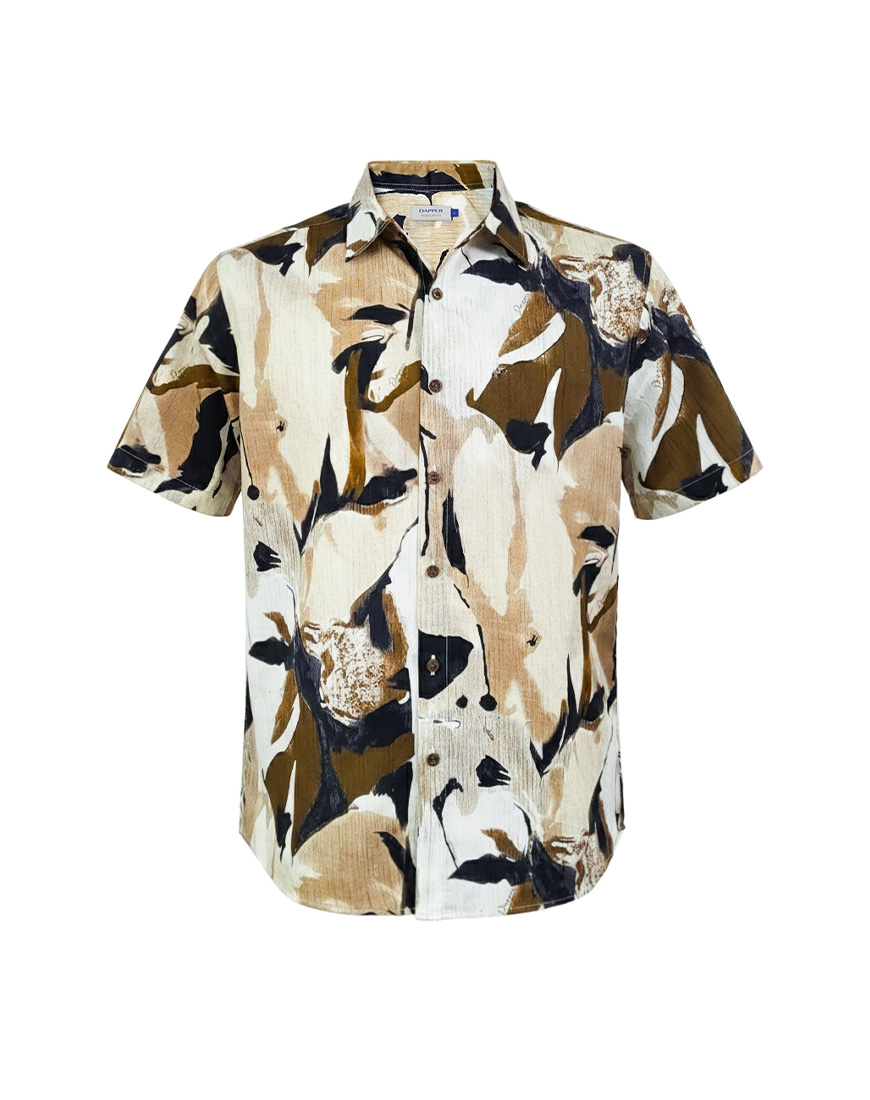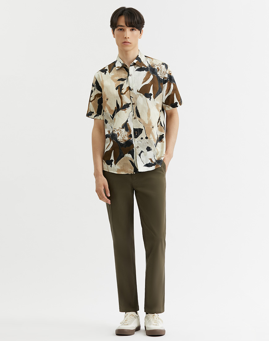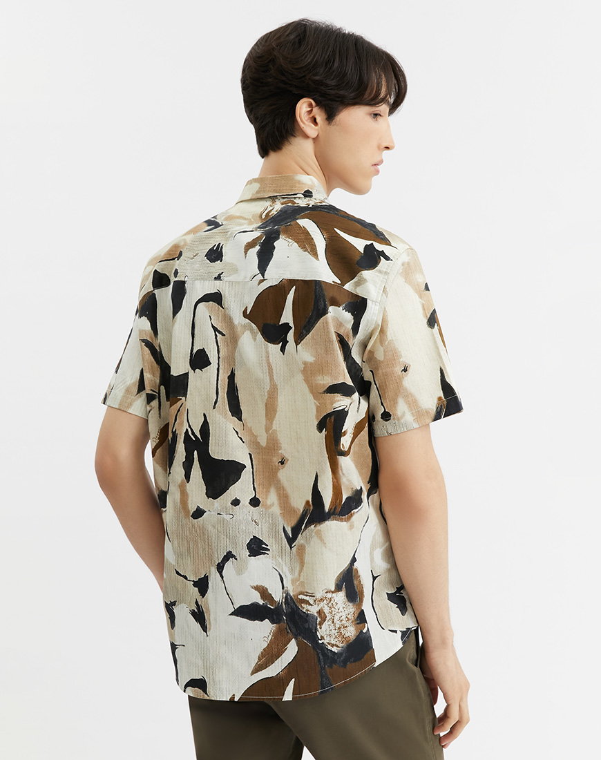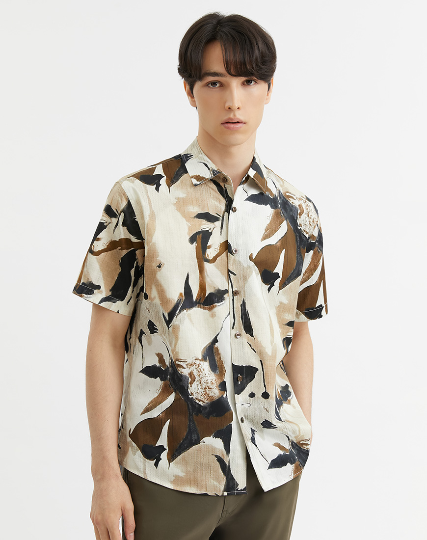 เสื้อเชิ้ตแขนสั้น ทรง Regular-Fit แบบมาตรฐาน ไม่เข้ารูป เนื้อผ้าคอตตอนซาติน ผิวสัมผัสนุ่ม เรียบลื่น ใส่สบาย ระบายอากาศได้ดี โดดเด่นด้วยลายพิมพ์ ดิจิตอลปริ้นทั้งตัว เป็นลวดลายธรรมชาติ “Artisan Flora” เสื้อเชิ้ตผู้ชายแขนสั้นตัวนี้สามารถใส่ได้หลากหลายโอกาส จับคู่กับกางเกงชิโน่ หรือกางเกงยีนส์ ช่วยทำให้ดูดีมากขึ้น สามารถใส่เป็นชุดลำลองได้ ดูทันสมัย