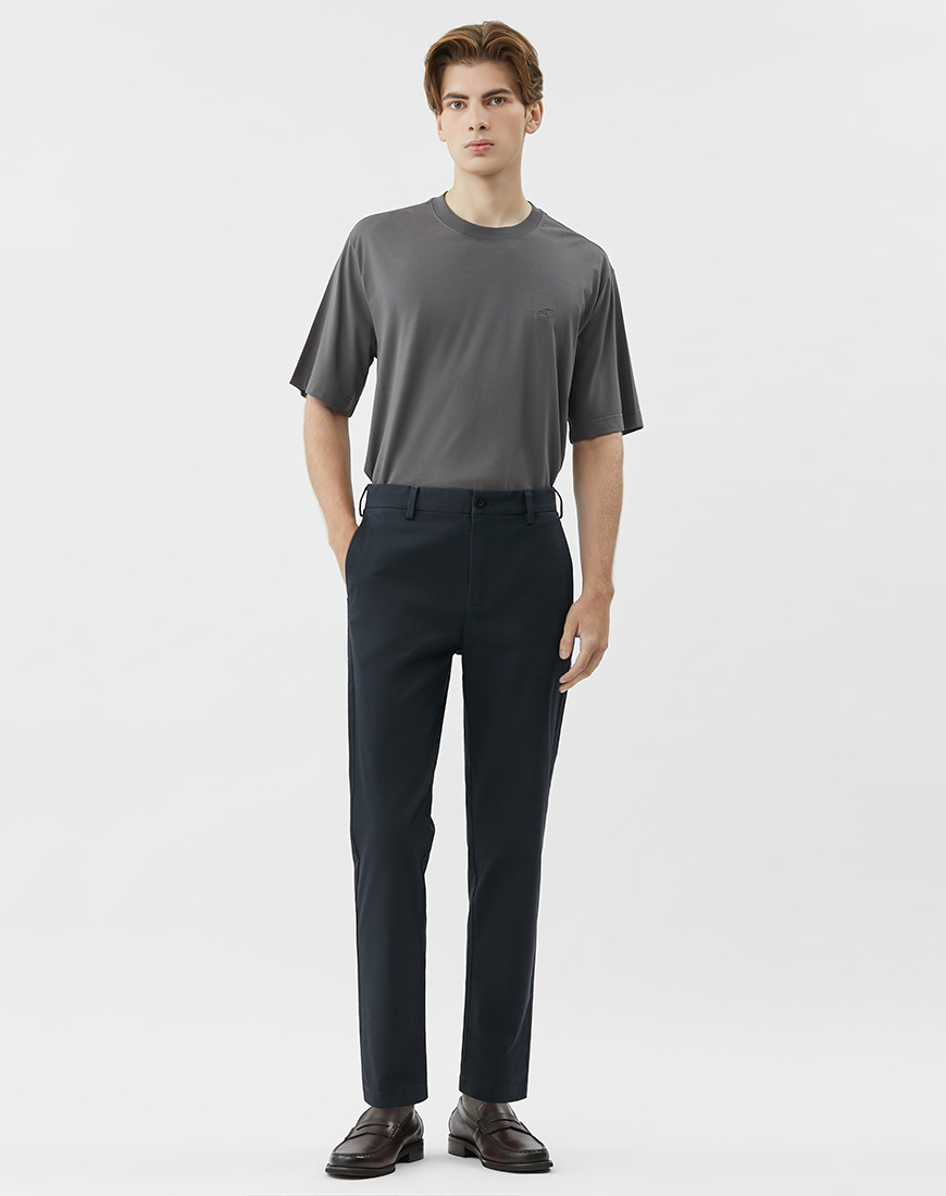 กางเกงชิโน่ ทรง Comfort fit ใส่สบาย ไม่รัดรูป เนื้อผ้าคอตตอนสแปนเด็กซ์ที่ให้สัมผัสนุ่มเป็นพิเศษ เป็นกางเกงขายาวผ้าชิโนที่มีความยืดหยุ่น ขอบเอวโอบกระชับ ไม่อึดอัดเพื่อความสบายในลุคลำลอง พร้อมห่วงเข็มขัด เพื่อรองรับความกว้างของเข็มขัดที่แตกต่างกัน ให้ลุคสุดคลาสสิก เป็นตัวเลือกที่ดีสำหรับผู้ที่ต้องการกางเกงที่ใส่สบาย แบบกึ่งทางการ