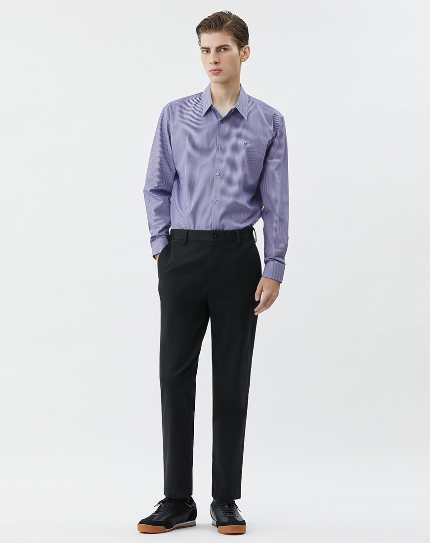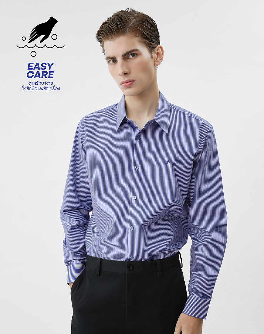 เสื้อเชิ้ตแขนยาว ทรง Regular fit ไม่เข้ารูปเหมาะกับทุกรูปร่าง ผลิตจากผ้าผสมวิสโคสและใยสังเคราะห์ เนื้อผ้ามีความแข็งแรง เป็นเสื้อทำงานผู้ชายที่ทนทานต่อการใช้งานและง่ายต่อการดูแลรักษา ระบายอากาศได้ดี โดดเด่นด้วยลายริ้ว ใช้งานในหลายโอกาส ทำให้เป็นตัวเลือกที่ใช้งานได้จริงสำหรับการใช้งานในชีวิตประจำวัน