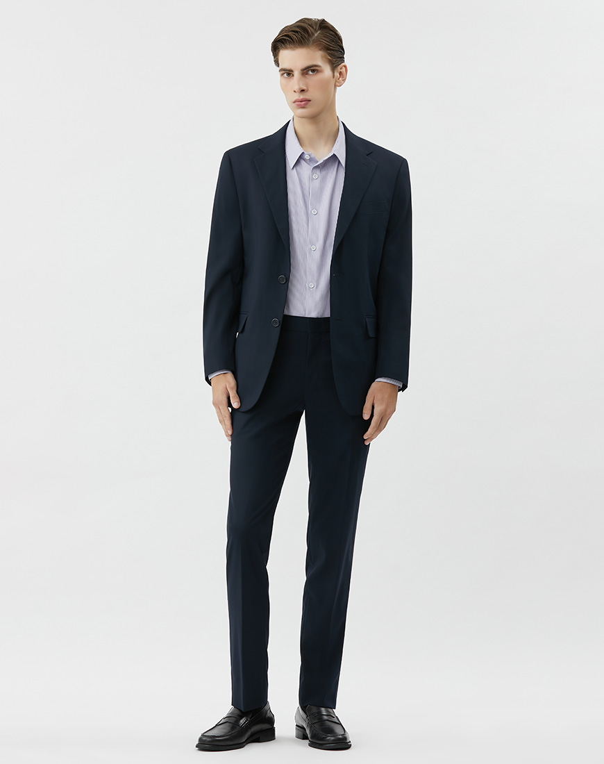 เสื้อสูทผู้ชาย ทรง REGULAR-FIT แบบมาตรฐาน ไม่เข้ารูปเหมาะกับทุกรูปร่าง เนื้อผ้าเส้นใยสังเคราะห์ผสมเรยอน ผสมผสานคุณสมบัติของวัสดุแต่ละชนิดได้อย่างลงตัว สวมใส่สบายรองรับทุกการเคลื่อนไหว ทนต่อการใช้งาน และง่ายต่อการดูแลรักษา เสื้อสูทชายตัวนี้เหมาะสำหรับการสวมใส่ในงานประชุมหรืองานสำคัญต่าง ๆ ทำให้ลุคของคุณดูสมาร์ทและทันสมัย