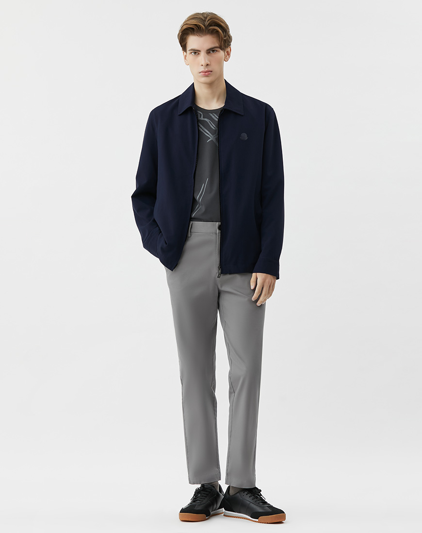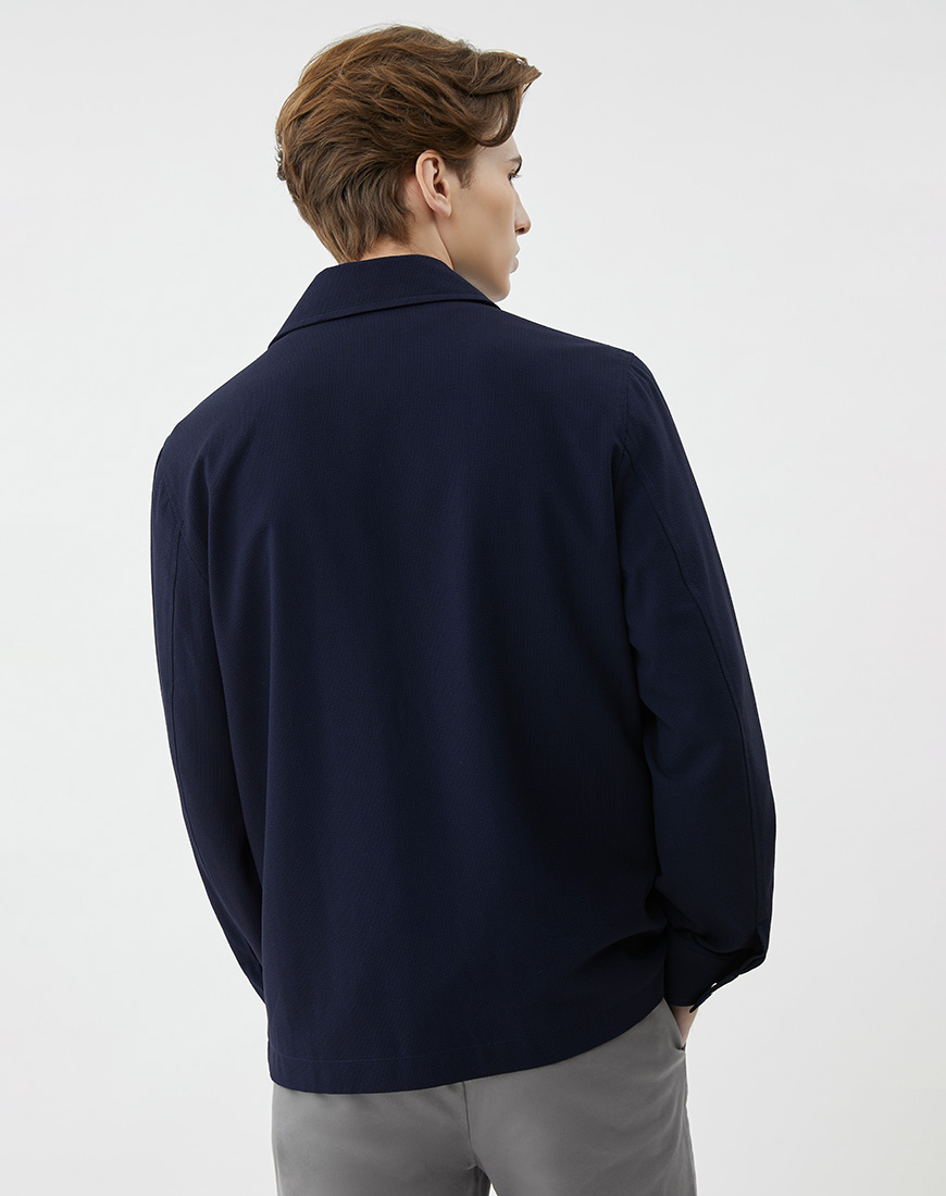 เสื้อแจ็คเก็ตสไตล์ยูทิลิตี้ มีปกเสื้อ ทรงหลวมเพื่อความสบายในการสวมใส่ ดีไซน์เรียบเท่ ผลิตจากผ้าเส้นใยสังเคราะห์ผสมสแปนเด็กซ์ เสื้อแจ็คเก็ตชายตัวนี้มีความทนทาน น้ำหนักเบา และดูแลง่าย กระเป๋าเจาะสองข้าง พร้อมตกแต่งป้ายและโลโก้หนังปั๊ม ชายเสื้อตรง เหมาะสำหรับลุคลำลองหรือใส่เป็นเลเยอร์ในวันที่ต้องการความคล่องตัวและความเท่แบบมินิมอล